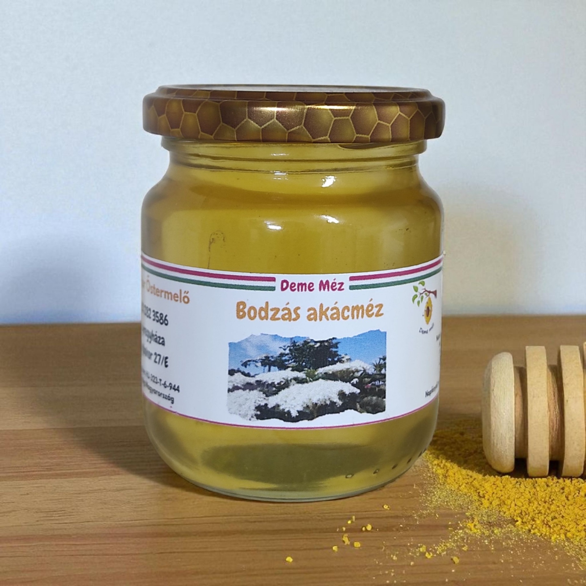 Úgynevezett "levendula ágyon" van az akácméz. Folyamatosan forgatni kell akár naponta többször az 5 literes üvegeket, hogy mindig mézbe kerüljön a levendulavirág. Közel egy HÓNAPIG tart ez a folyamat, míg kellőképpen kiszívja belőle azt a csodálatos aromát! Azután nagyon sűrű szűrőn folyatjuk át, így teljesen ki tudjuk szedni belőle a virág darabokat, hogy megkapd a tiszta de mégis isteni finom levendulás akácmézet!