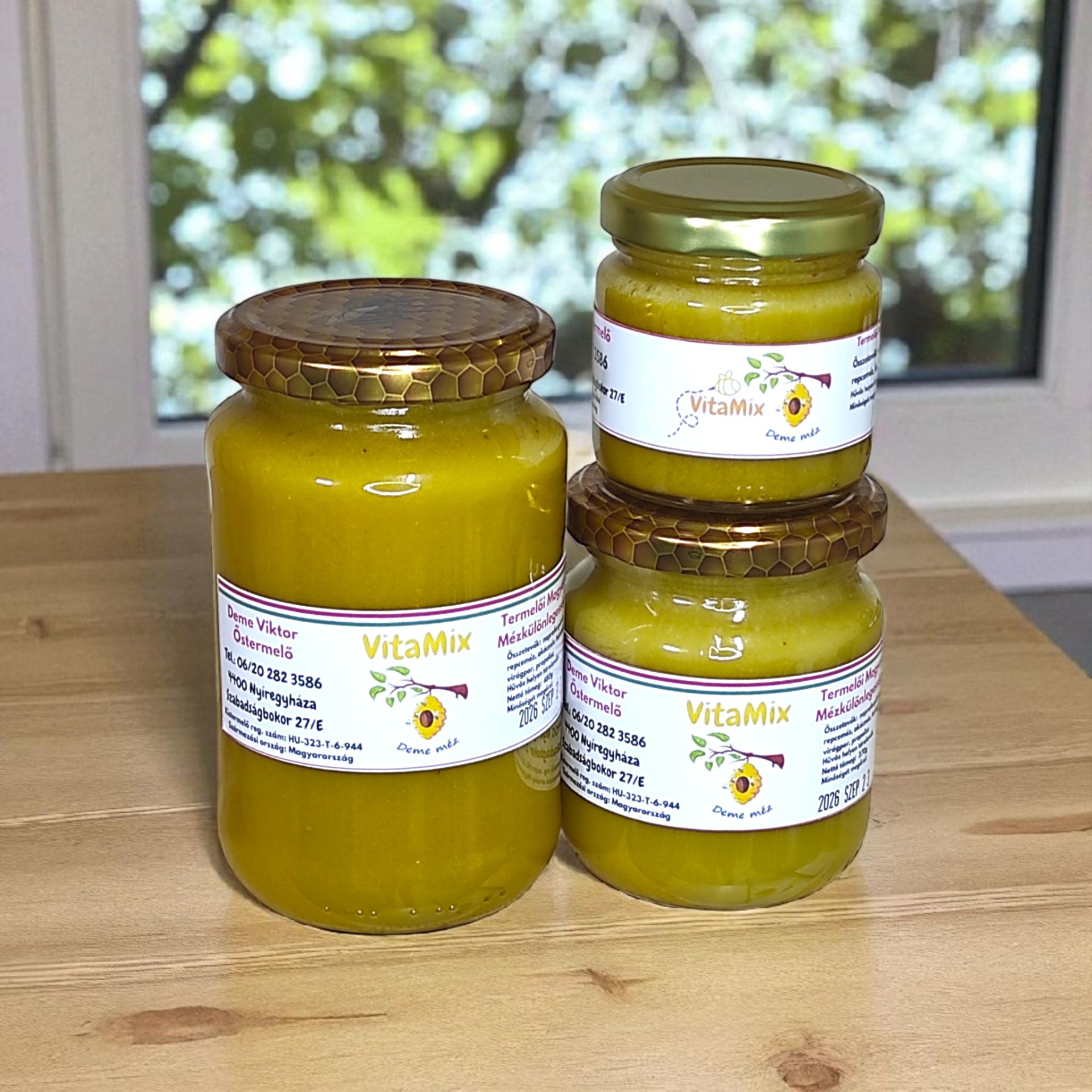 Összetevők: Napraforgóméz, Akácméz, Repceméz, Hársméz, Virágpor, Propolisz