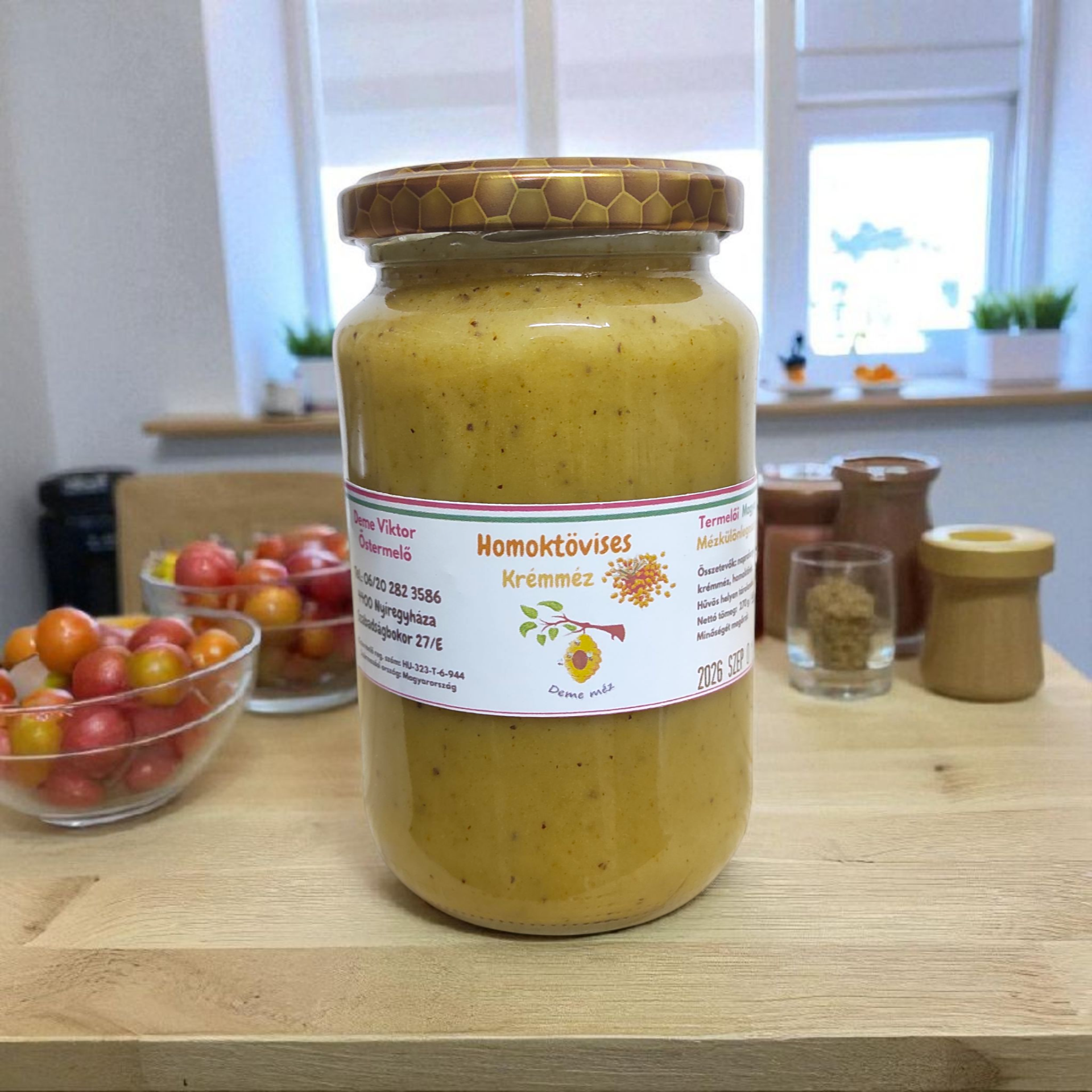 Alapja a napraforgó krémméz, melyhez homoktövis őrleményt keverünk, kellemesen ízt kapva.