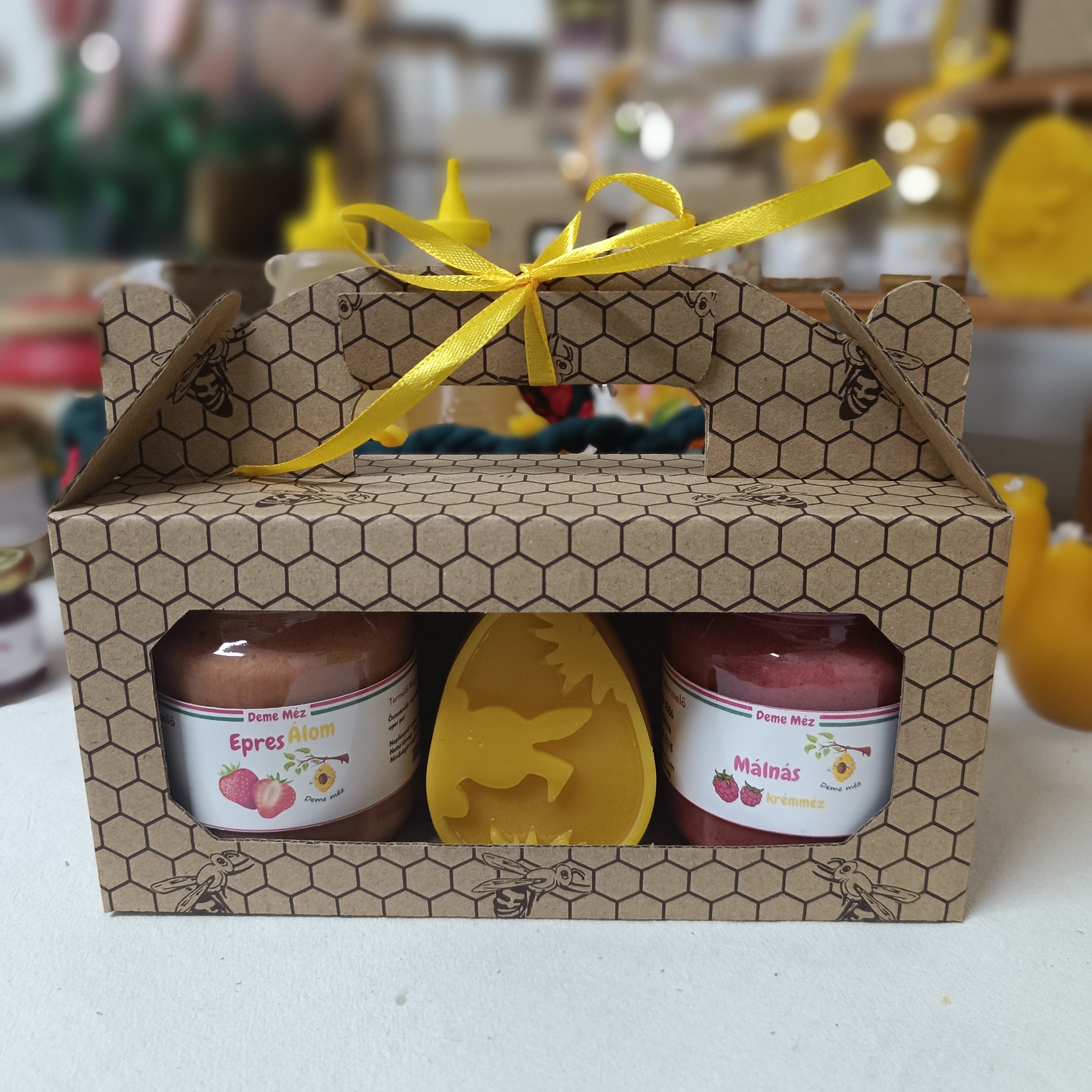 (2 db 280g-os méz + gyertya vagy 3 db 280g-os méz fér el a dobozban)