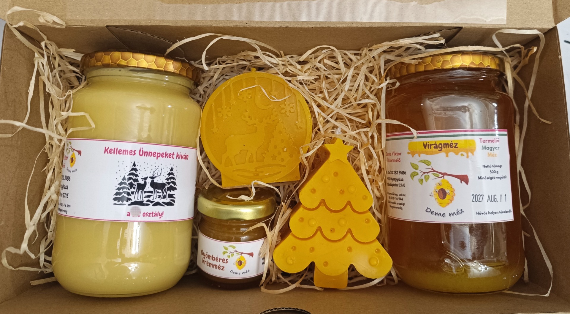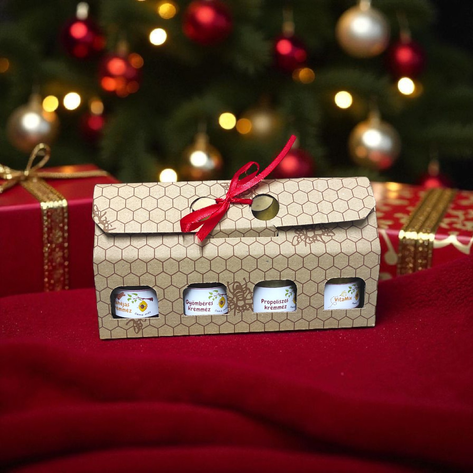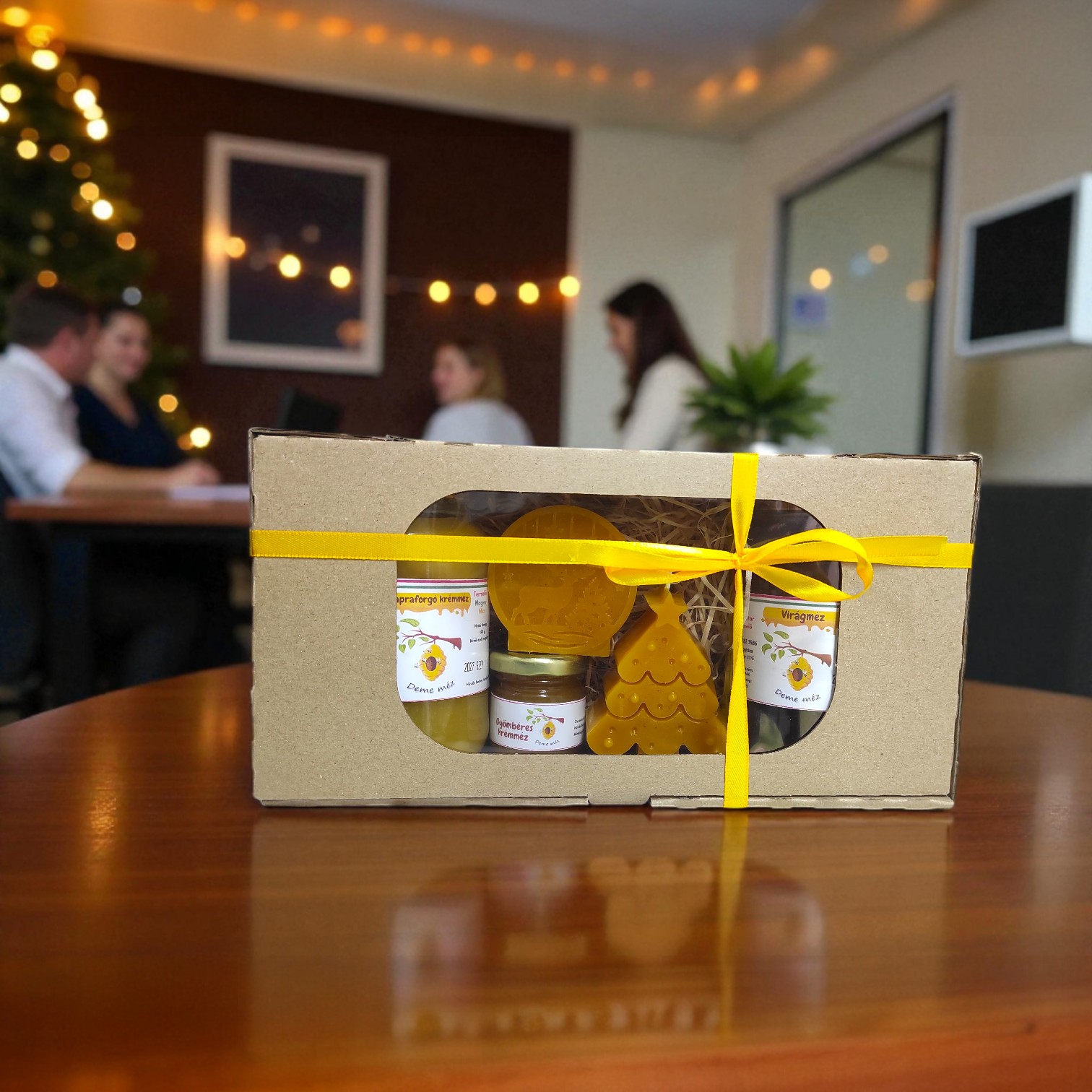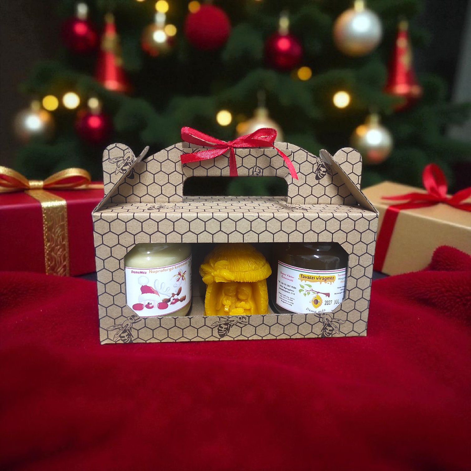 Lepd meg a családtagokat, barátokat vagy akár a dolgozókat ezzel a méhviaszgyertya és méz díszdobozos válogatással.