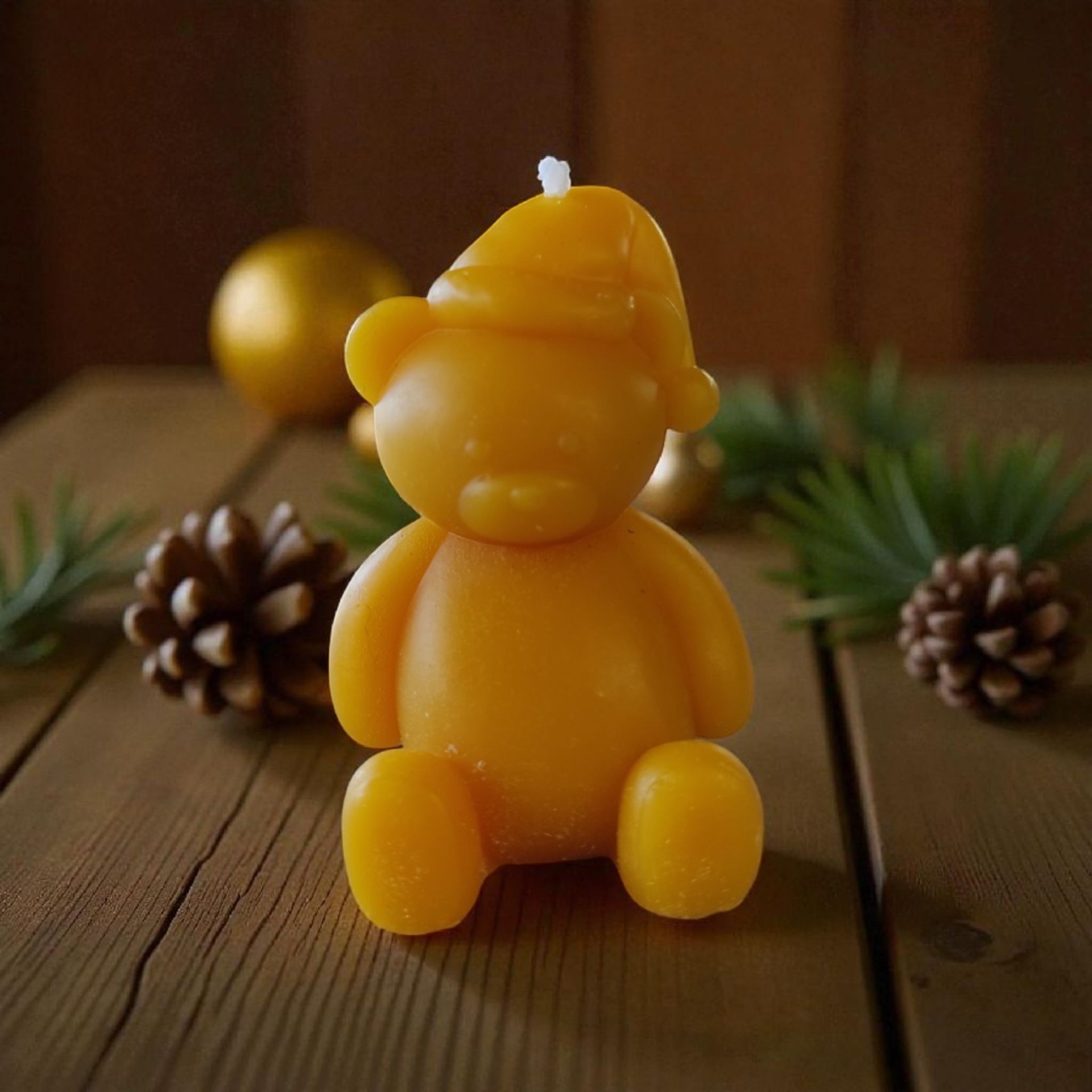 Mikulás sapkás maci méhviasz gyertya