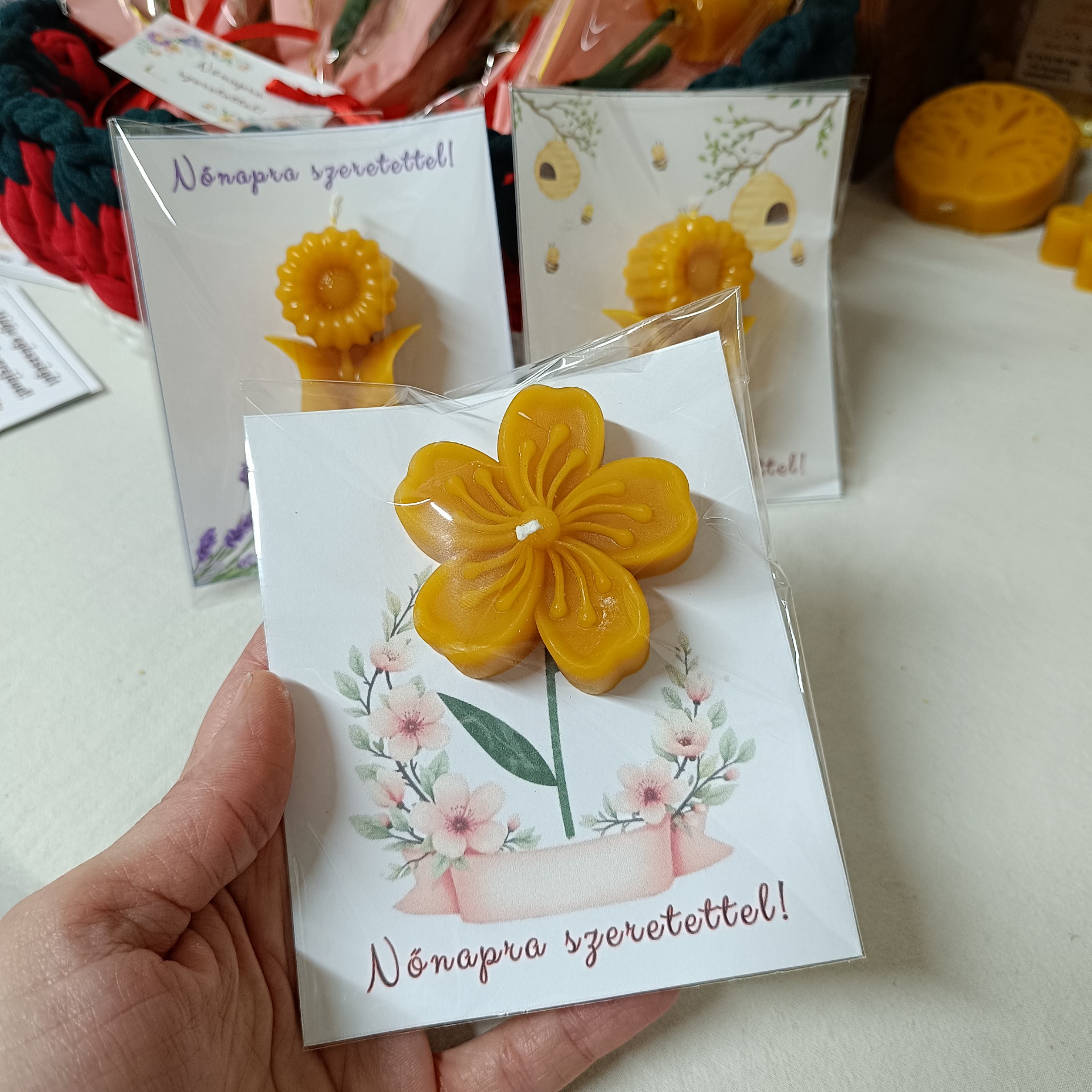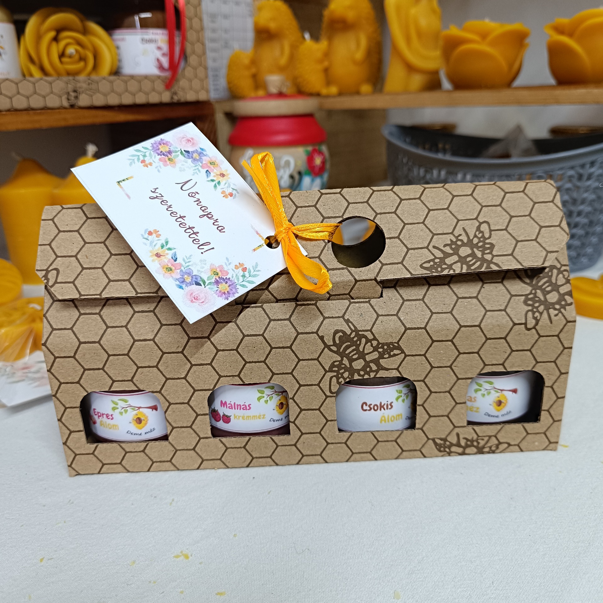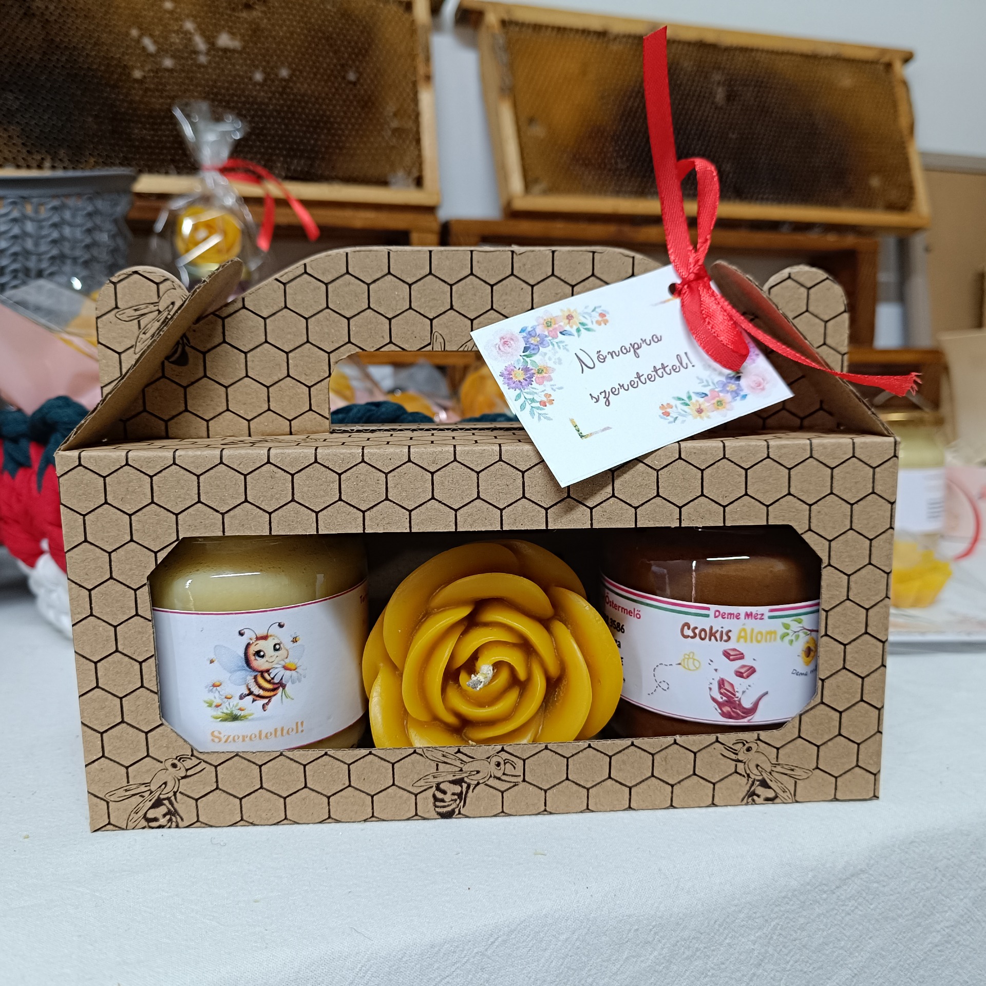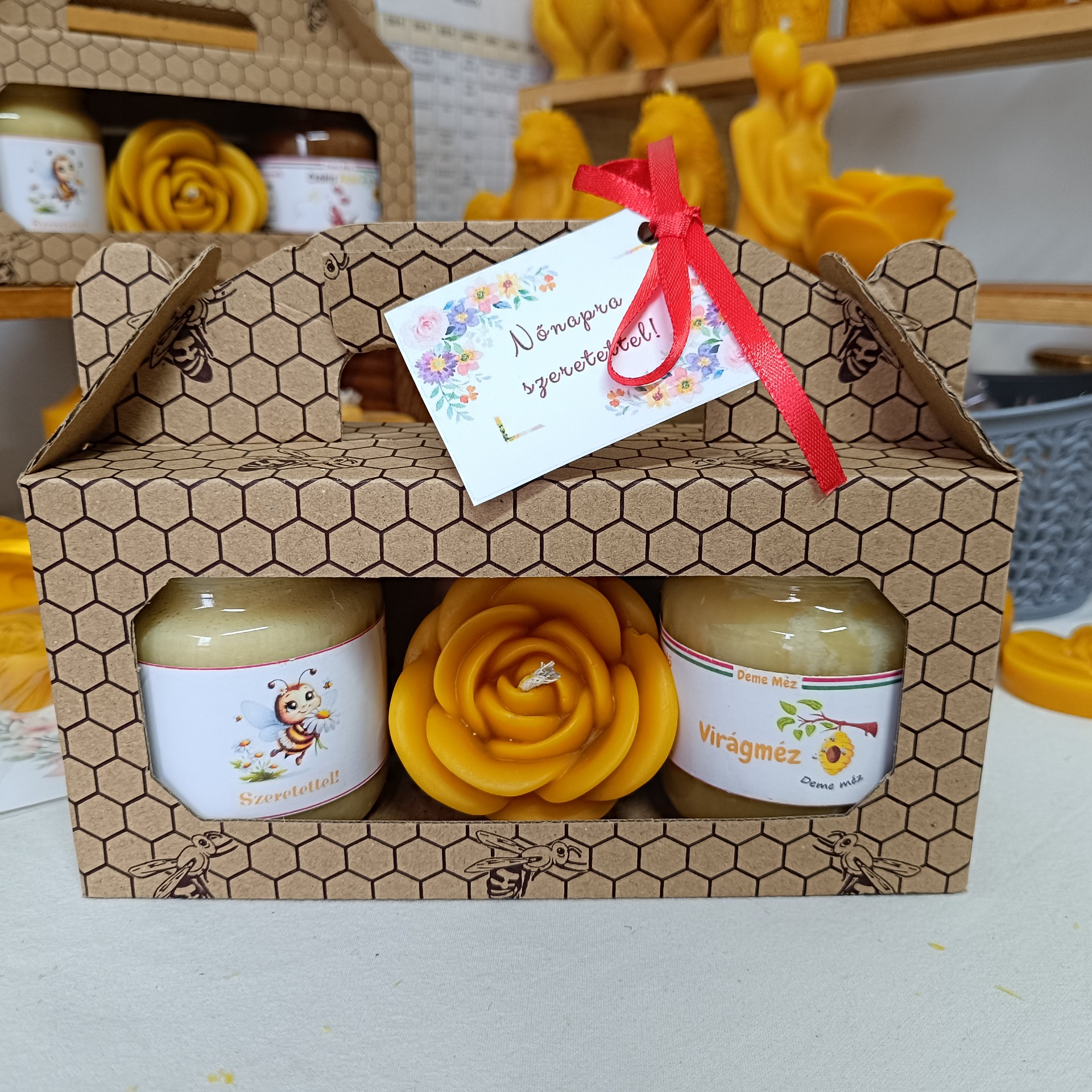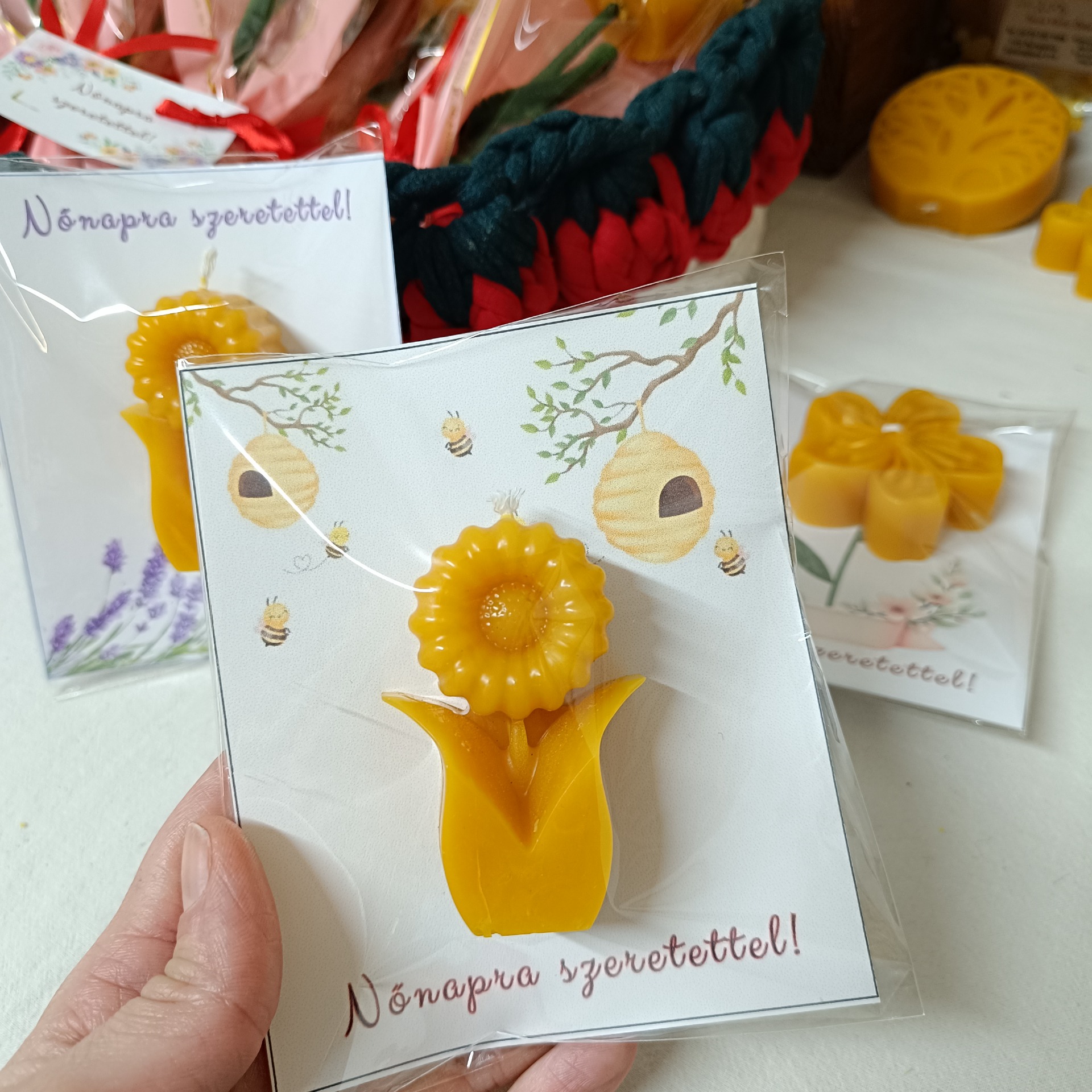 Díszcsomagolásban, Nőnapi kártyával.